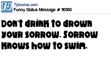 X Don't drink to drown your sorrow. Sorrow knows how to swim.