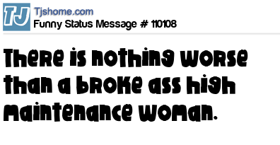 - # 150164 I met a woman on a dating site that said she was high maintenance when I finally saw her it looked more like she was in need of major repairs