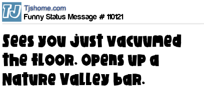 X is Sees you just vacuumed the floor. Opens up a Nature Valley bar.