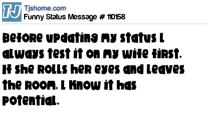 X Before updating my status l always test it on my wife first. If she rolls her eyes and leaves the room, l know it has potential.