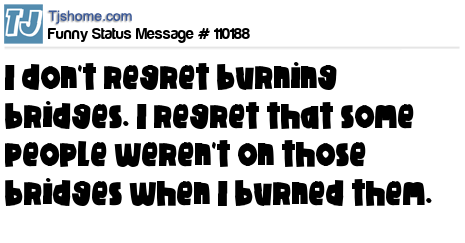 X says I don't regret burning bridges. I regret that some people weren't on those bridges when I burned them.
