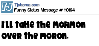- # 116344 Sorry Romney lost, imagine all those moron joke we coulf have done..... sorry mormon.