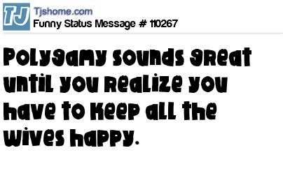 X says Polygamy sounds great until you realize you have to keep all the wives happy.