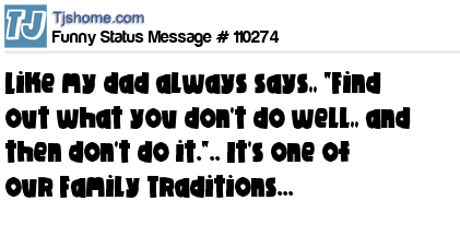 X Like my dad always says,, "Find out what you don't do well,, and then don't do it.".. It's one of our Family Traditions...