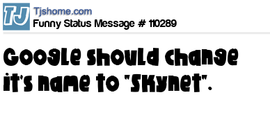 - # 87952 There's a rumor going around that Google will be changing it's name to Skynet.