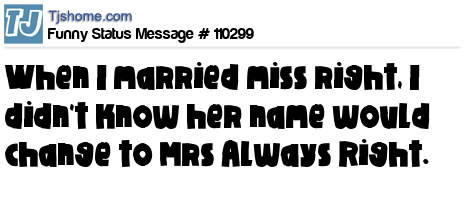 X When I married miss right, I didn't know her name would change to Mrs Always Right.