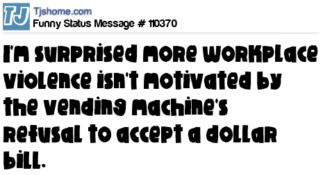 X says I'm surprised more workplace violence isn't motivated by the vending machine's refusal to accept a dollar bill.