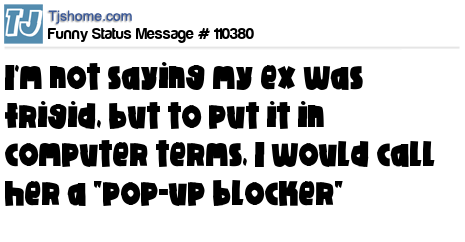 X is I'm not saying my ex was frigid, but to put it in computer terms, I would call her a "pop-up blocker"