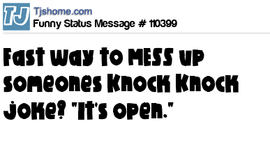 X is Fast way to MESS up someones Knock Knock joke? "It's open."