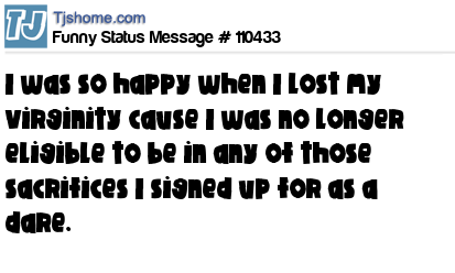 X says I was so happy when I lost my virginity cause I was no longer eligible to be in any of those sacrifices I signed up for as a dare.