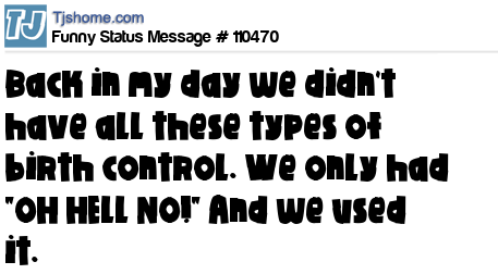 X Back in my day we didn't have all these types of birth control. We only had "OH HELL NO!" And we used it.