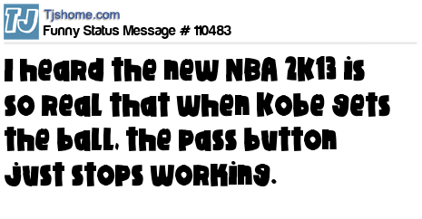 X I heard the new NBA 2K13 is so real that when Kobe gets the ball, the pass button just stops working.