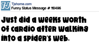 X says Just did a weeks worth of cardio after walking into a spider's web.