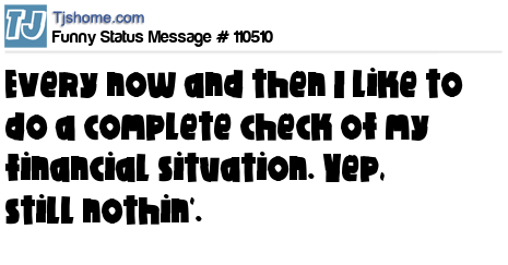 X says Every now and then I like to do a complete check of my financial situation. Yep, still nothin'.