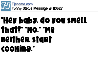 X is "Hey baby, do you smell that?" "No." "Me neither, start cooking."