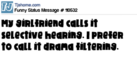 X My girlfriend calls it selective hearing. I prefer to call it drama filtering.
