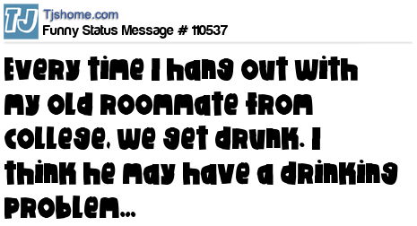 X says Every time I hang out with my old roommate from college, we get drunk. I think he may have a drinking problem…