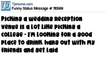 X is Picking a wedding reception venue is a lot like picking a college - I'm looking for a good place to drink, hang out with my friends and get laid
