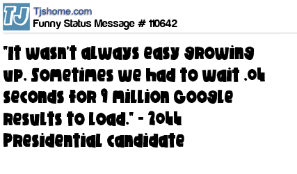 X is "It wasn't always easy growing up. Sometimes we had to wait .04 seconds for 9 million Google results to load." - 2044 Presidential candidate