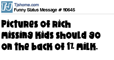 - # 190851 Pictures of missing rich kids should go on the back of skimmed-milk!