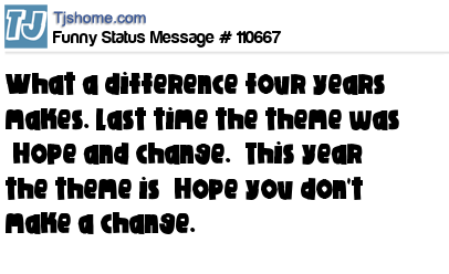 X is What a difference four years makes. Last time the theme was “Hope and change.” This year the theme is “Hope you don't make a change.”