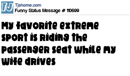 X My favorite extreme sport is riding the passenger seat while my wife drives