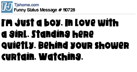 X says I'm just a boy. In love with a girl. Standing here quietly. Behind your shower curtain. Watching.