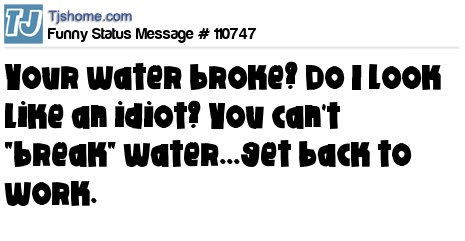 X says Your water broke? Do I look like an idiot? You can't "break" water...get back to work.