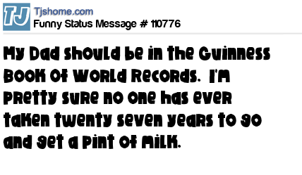 X is My Dad should be in the Guinness Book Of World Records. I'm pretty sure no one has ever taken twenty seven years to go and get a pint of milk.