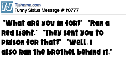 X is "What are you in for?" "Ran a red light." "They sent you to prison for that?" "Well, I also ran the brothel behind it."