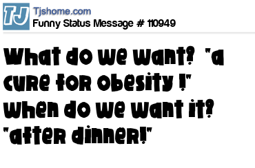 X what do we want? "a cure for obesity !" when do we want it? "after dinner!"
