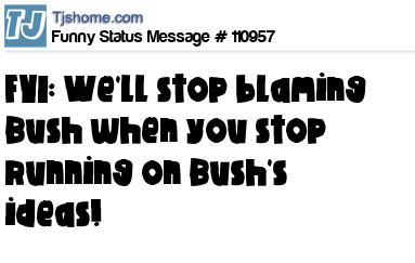 - # 21340 we need to stop blaming obama for everything bush screwed up..then stop blaming bush for everything Clinton screwed up and then...oh you get it.