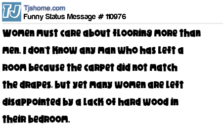 X Women must care about flooring more than men. I don't know any man who has left a room because the carpet did not match the drapes, but yet many women are left disappointed by a lack of hard wood in their bedroom.