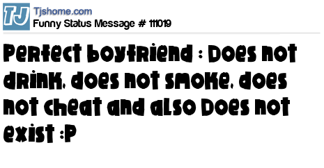 X says Perfect boyfriend : Does not drink, does not smoke, does not cheat and also Does not exist :P