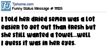 X says I told her dried semen was a lot easier to get out than fresh but she still wanted a towel...well I guess it was in her eyes.