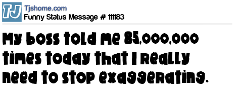 X My boss told me 85,000,000 times today that I really need to stop exaggerating.