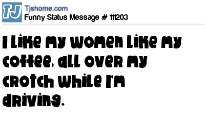 X  I like my women like my coffee, all over my crotch while I'm driving.