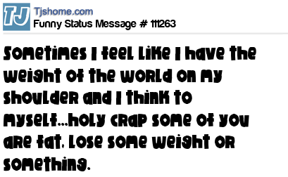 X Sometimes I feel like I have the weight of the world on my shoulder and I think to myself...holy crap some of you are fat, lose some weight or something.