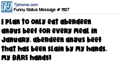 X I plan to only eat aberdeen angus beef for every meal in January. aberdeen angus beef that has been slain by my hands. my BARE hands!