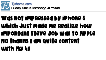 X is Was not impressed by iPhone 5 which just made me realize how important Steve Job was to Apple No thanks I am quite content with my 4s