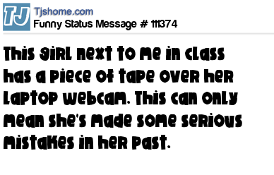 X says This girl next to me in class has a piece of tape over her laptop webcam. This can only mean she's made some serious mistakes in her past.