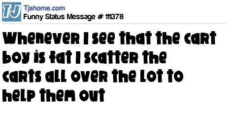 X is whenever I see that the cart boy is fat I scatter the carts all over the lot to help them out