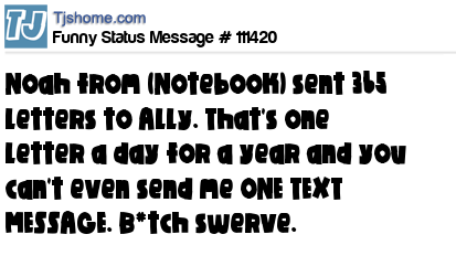 X Noah from (Notebook) sent 365 letters to Ally. That's one letter a day for a year and you can't even send me ONE TEXT MESSAGE. B*tch swerve.