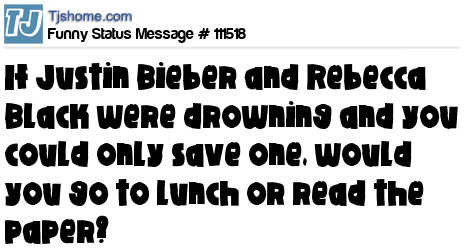 X is If Justin Bieber and Rebecca Black were drowning and you could only save one, would you go to lunch or read the paper?