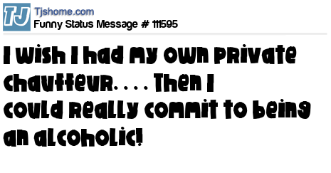 X says I wish I had my own private chauffeur. . . . Then I could really commit to being an alcoholic!