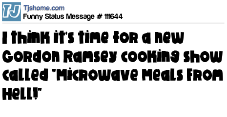 X I think it's time for a new Gordon Ramsey cooking show called "Microwave Meals From Hell!"