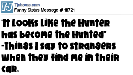 X says 'It looks like the Hunter has become the Hunted" -Things I say to strangers when they find me in their car.