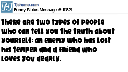 X is There are two types of people who can tell you the truth about yourself: an enemy who has lost his temper and a friend who loves you dearly.