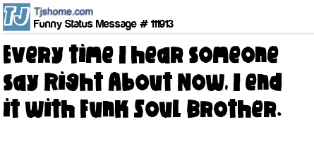 X says Every time I hear someone say Right About Now, I end it with Funk Soul Brother.
