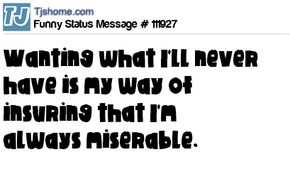 X says Wanting what I'll never have is my way of insuring that I'm always miserable.